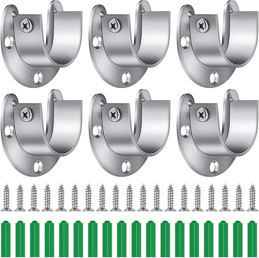 Stainless steel closet rod flange socket for 19mm pole 4mm hole silver set of 2.